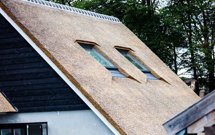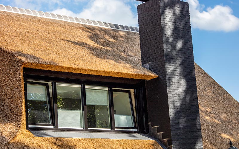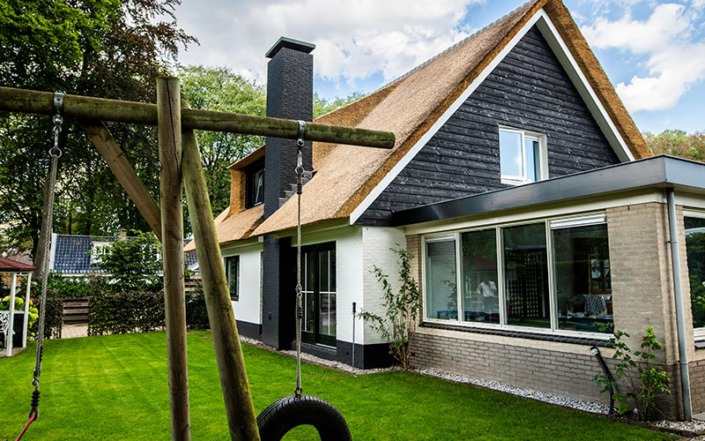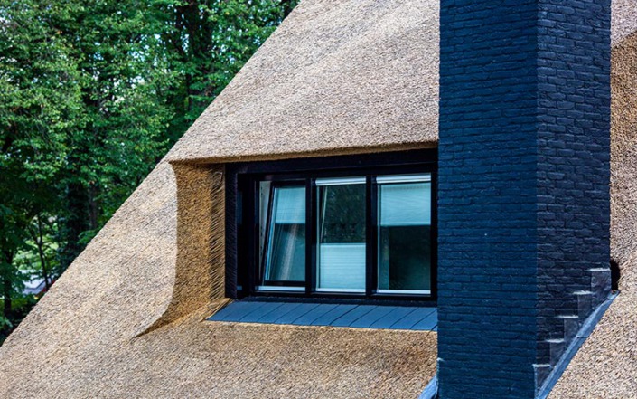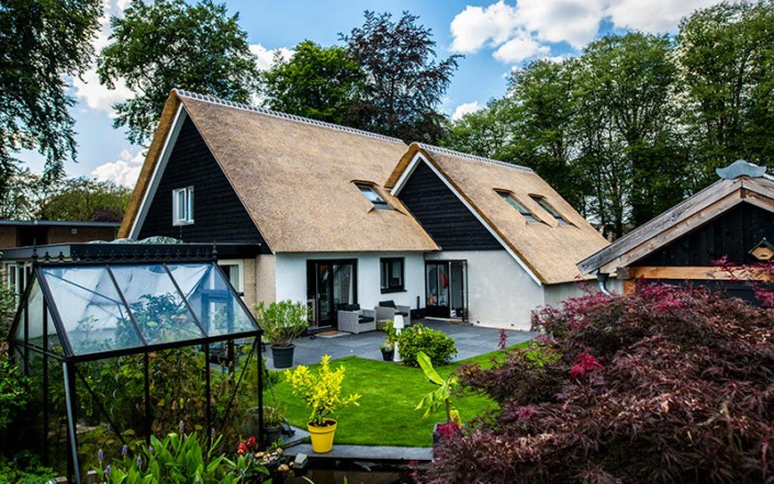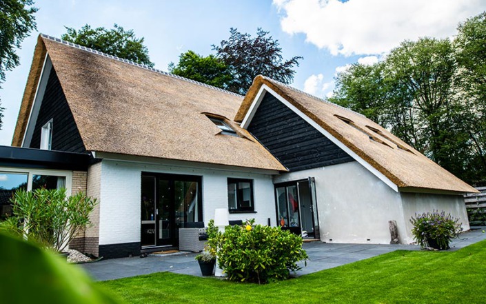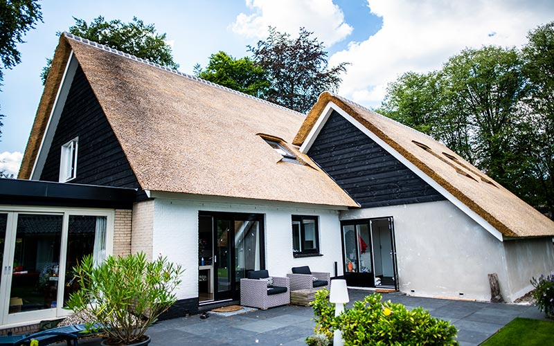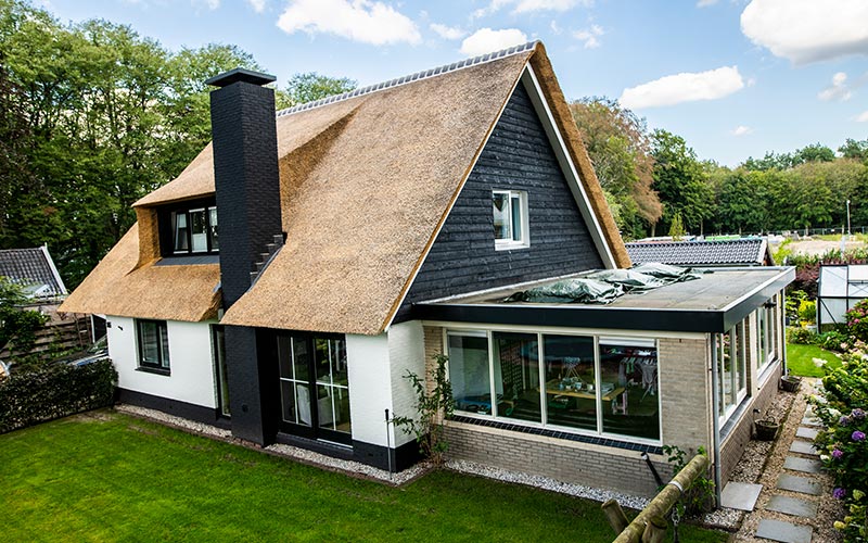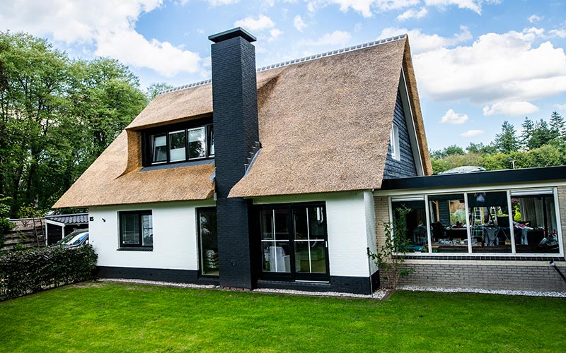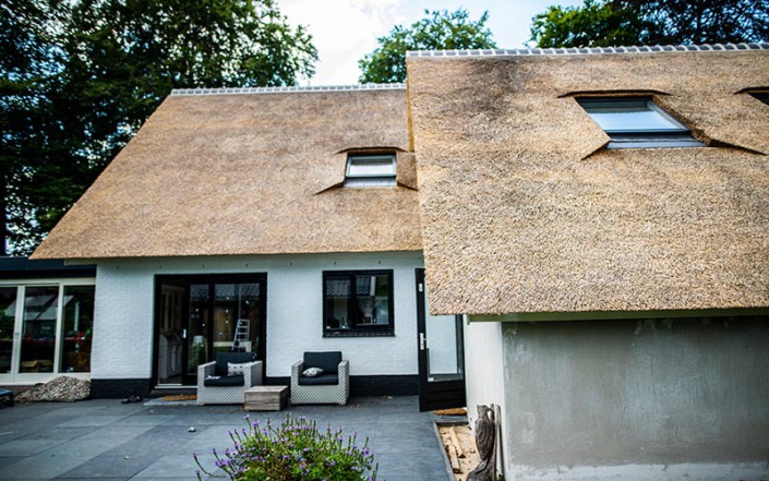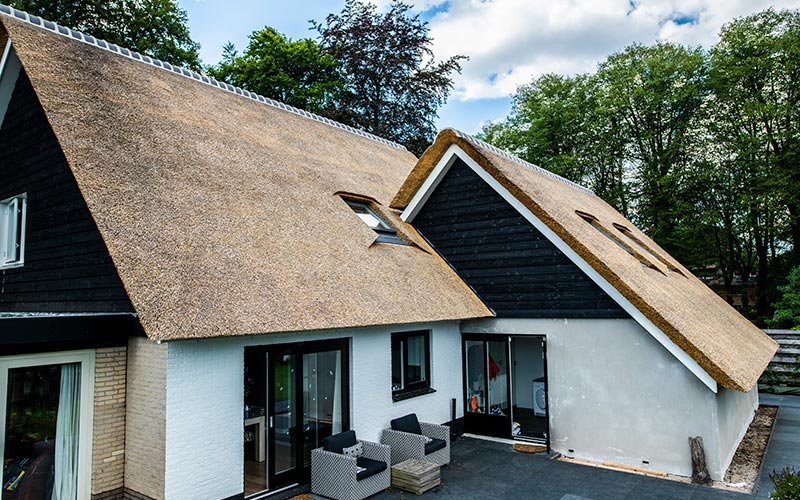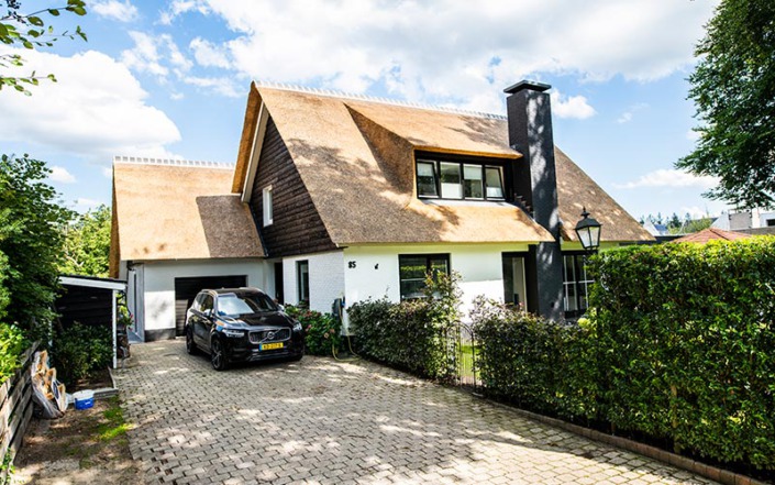 Deze woning in Austerlitz had oorspronkelijk een pannendak, waardoor er sprake was van weinig uitstraling. We hebben de woning goed bekeken en met de klant overlegt wat de mogelijkheden waren, een rieten kap voorgesteld en de verhoudingen van de twee gebouwen in orde gemaakt waardoor het nu een geheel is geworden. Benieuwd hoe u dak eruit gaat zien met een rieten dak neem dan vrijblijvend contact met ons op.