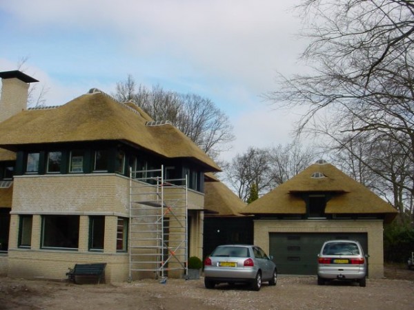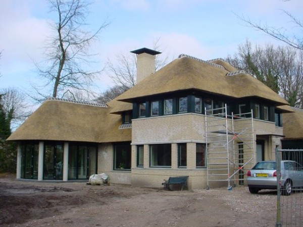 Deze moderne villa in Laren (regio ‘t Gooi) hebben wij voorzien van een prachtig rieten dak. Het gaat hier om een nieuwbouwwoning, die vanwege het rieten dak direct al een karakteristieke uitstraling heeft. Het dak heeft een gesloten kapconstructie waarbij een aantal mooie details bijdragen aan het unieke karakter van het gehele dak. Daarnaast geeft het dak van de ronde serre een mooi contrast met de strakke hoeken van de rest van de villa. Een stijlvolle woning met rieten dak is het eindresultaat.
