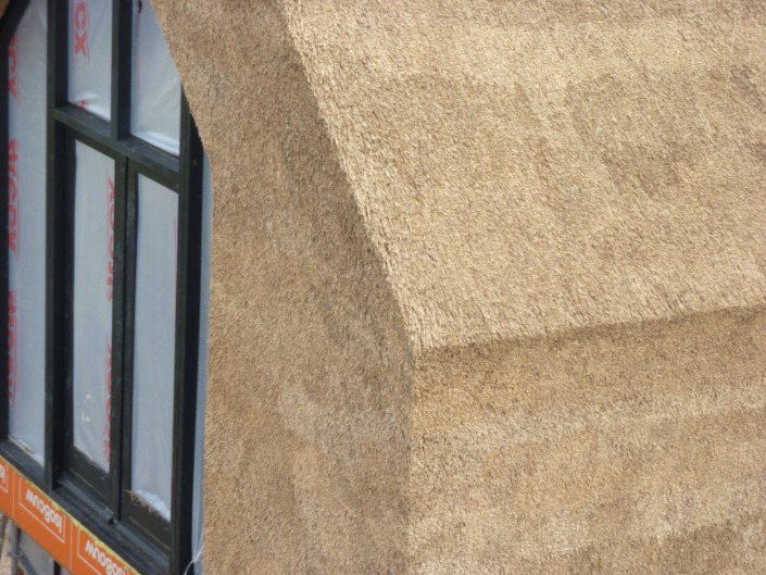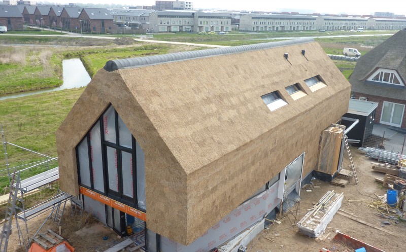Deze woning in Arnhem beschikt over een moderne rieten kap. Dit zijn de moeilijkste kappen om te realiseren, aangezien er sprake is van stijl naar schuin en horizontaal riet. Het is een behoorlijke uitdaging, die we vooraf tot in de kleinste details hebben moeten plannen, om ervoor te zorgen dat we de kwaliteit van het dak optimaal kunnen garanderen.
