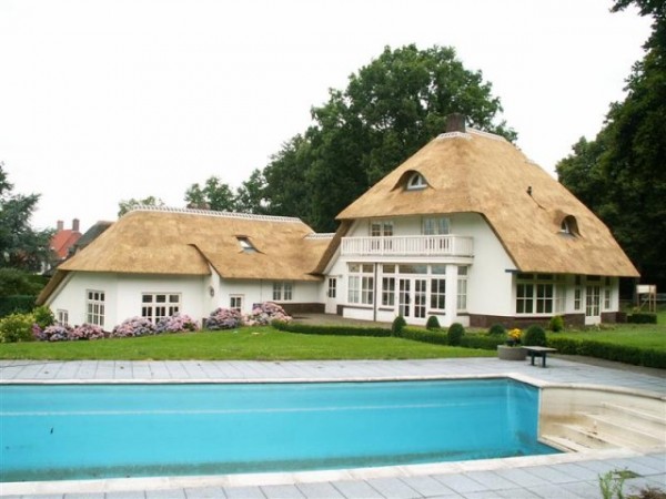 Deze riante villa in Rhenen beschikte over een rieten dak met een open constructie, iets dat steeds minder goed past bij onze huidige wensen op het gebied van wooncomfort en isolatie. We hebben de woning voorzien van een gesloten constructie, waardoor de 500 m2 oppervlakte zorgt voor een betere isolatie. U ziet dat de woning alles in zich heeft om een ‘mooie villa’ te heten, al was het maar de donker grijze nokvorst die u kunt zien.