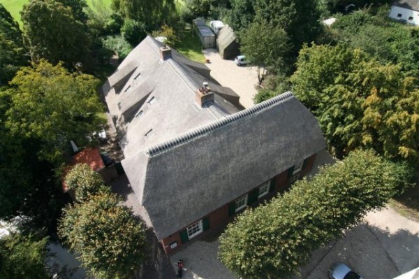 We hebben het dak van deze artsenpraktijk in Nieuwegein volledig vernieuwd, maar bovendien gezorgd voor de juiste plaatsing van Velux ramen. In het oorspronkelijke dak waren deze niet aanwezig, waardoor er weinig licht in de woning viel. De Rietdekker heeft geadviseerd de ramen aan te brengen en het timmerwerk aan de spanten te verstevigen. We hebben bovendien de kapconstructie steviger gemaakt en het lood rond de schoorsteen vernieuwd en aangepast.
