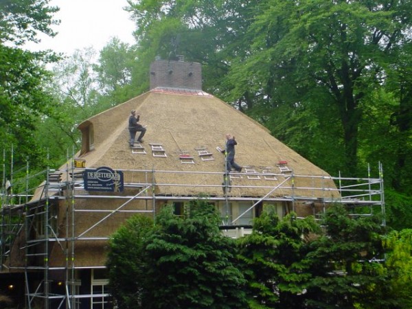 Op deze woning in Naarden mochten wij een nieuw rieten dak plaatsen. De bijzondere vorm van dit dak maakte het een mooie uitdaging voor een rietdekker. Deze woning heeft namelijk een gebroken kap, die ook wel zadeldak wordt genoemd. Vele andere rietdekkers durfden de opdracht niet aan te nemen, omdat het vaak lastig is om een soortgelijke woning van een rieten dak te voorzien.