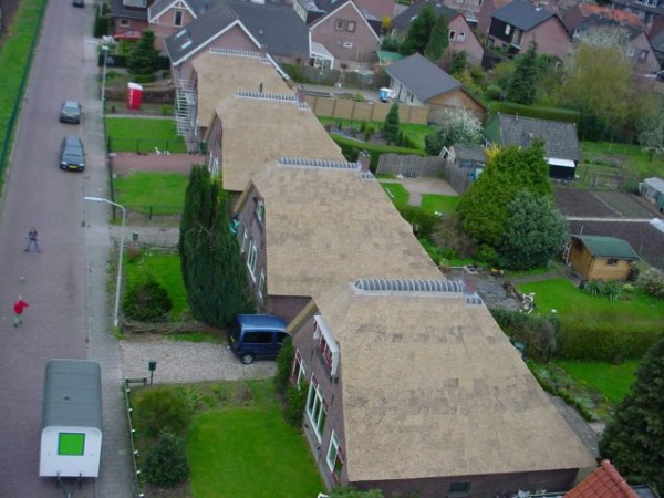 We hebben als De Rietdekker met twee andere rietdekkers samengewerkt, om een complete wijk van een prachtig rieten dak te voorzien. Het totale oppervlakte van 3200m2 aan riet zorgt voor een natuurlijke uitstraling. We zijn er met onze collega’s in geslaagd om de klus binnen 8 weken te klaren. Het zijn vooral het strak plannen en het organiseren van de werkzaamheden geweest die ervoor hebben gezorgd dat we zo snel hebben kunnen werken.