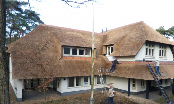 Rieten dak kantoorpand vernieuwd in Bilthoven, Utrecht