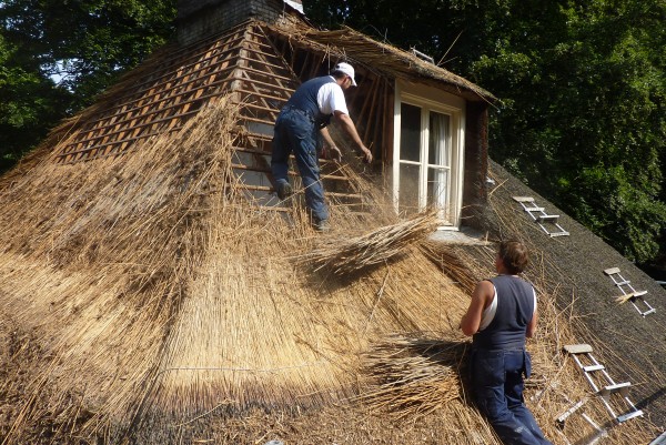 Rieten kap vervangen bij vrijstaande villa in Naarden