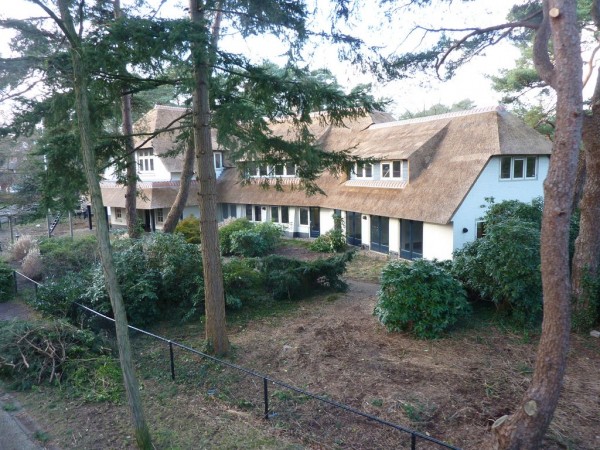 Rieten dak met gesloten constructie kantoorpand in Bilthoven