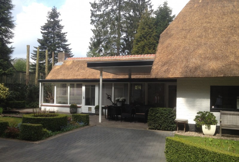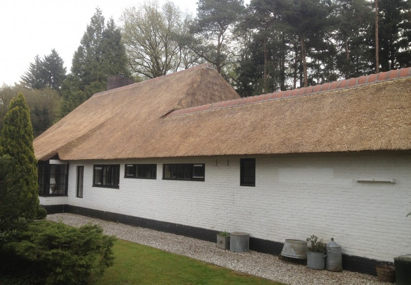 We hebben een grondige reparatie uitgevoerd aan dit rieten dak in Wolfheze. Het dak had de laatste jaren flink aan kwaliteit verloren, waardoor het tijd werd weer om in te grijpen. De complexe hoeken van het dak maakte het lastig om hier goed mee aan de slag te gaan. Onze vakkundige medewerkers zijn daar uitstekend in geslaagd en hebben er op die manier voor gezorgd dat het rieten dak nu weer in een uitstekende staat verkeerd. Het dak gaat weer een aantal jaren mee, waardoor we tevreden terugkijken op de reparatie die we hebben uitgevoerd.